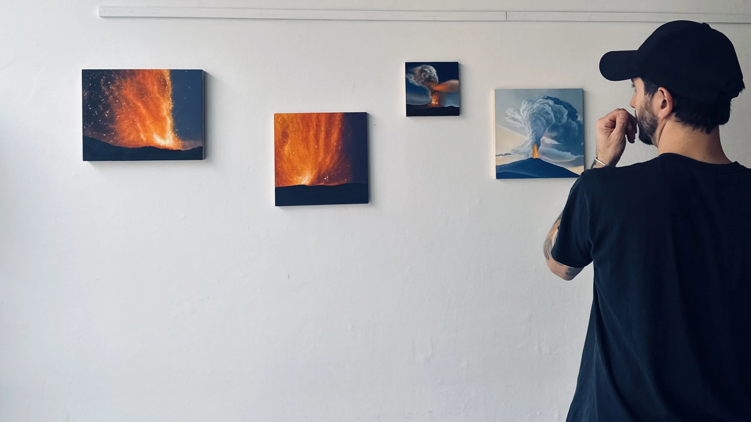 Asa Taulbut - paintings, postcards and photo books - FIRE WORKS, small paintings of big things - Exhibition now on until 20/12/25 in our front room